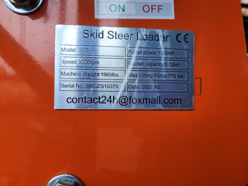 FACTORY DIRECT** 2025 Unused MMS MS36C Skid Steer Loader Year: 2025Make: MMSModel: MS36CBody: Skid Steer LoadersHour: 0.0 hrBucket Capacity: 0.12m3Engine Power: 13.5 HPMax. Lifting: 770 lbsMachine Weight: 1,985 lbsSpeed: 3,000 rpmVIN: 36CJ2510375Bucket CapElectric start Open Operator Station40 in BucketToolboxFor more information Contact King Cheung on 0477987576 or [email protected]Note: OEM images and VIDEOS shown are for illustration purposes only, and used as a guide only, inspections highly recommended.