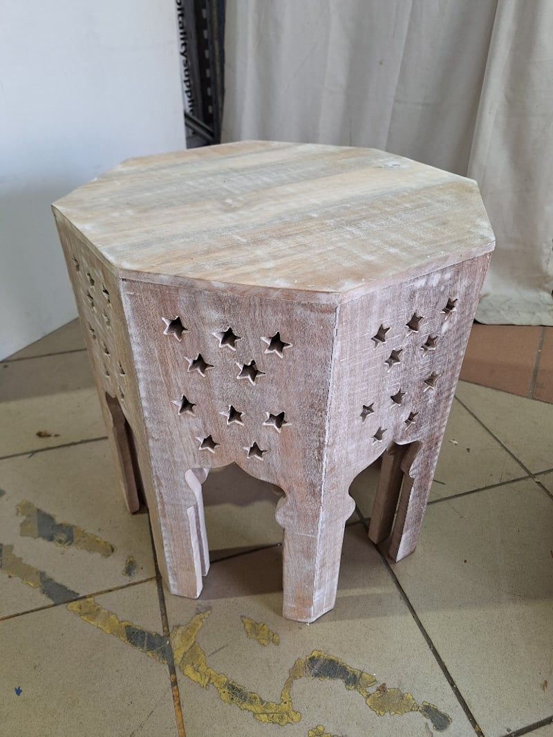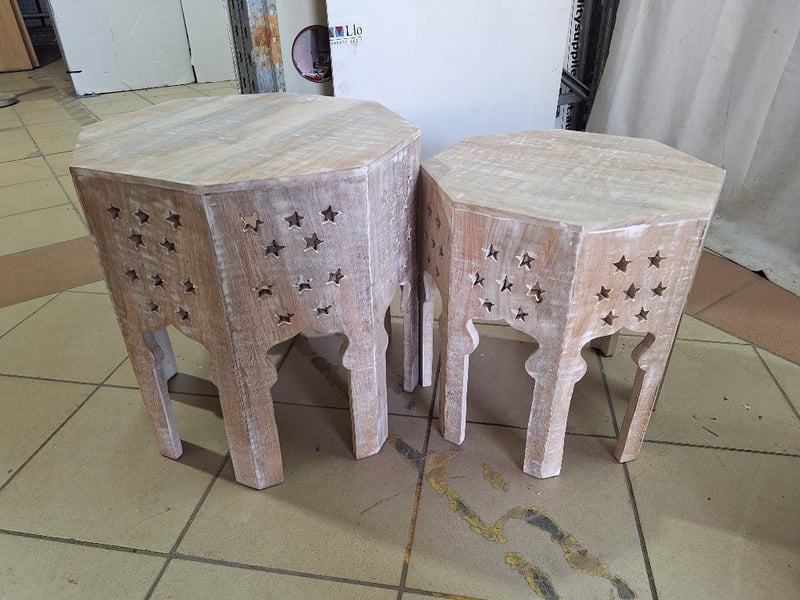 x3 Stackable Side Tables With Star Pattern, Timber Style, Natural Finish