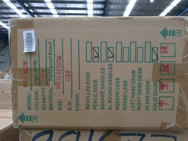 RRP$5100, Bathroom Vanity, WH15-600W, White, QTY: 20 to pallet, sold as pallet lot,