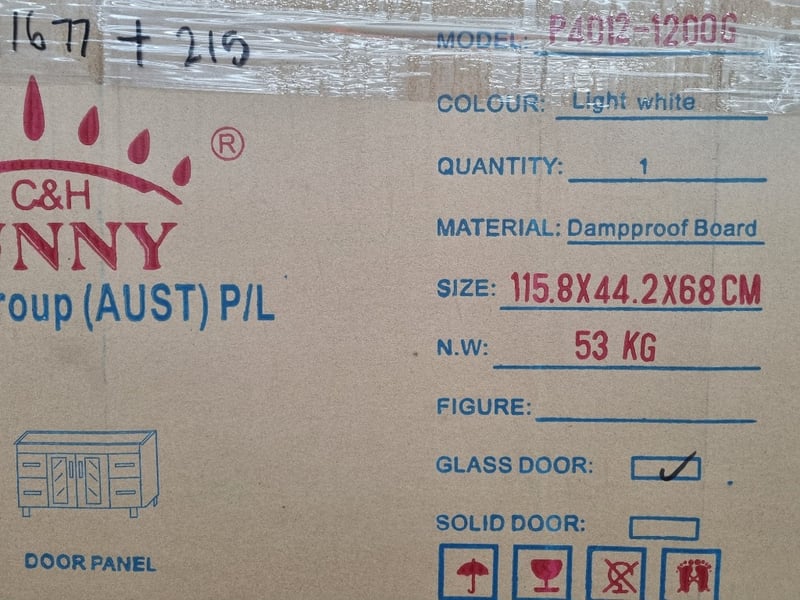 RRP$4445, Bathroom Vanity, P4012-1200G, DAMPPROOF BOARD, LIGHT WHITE,
