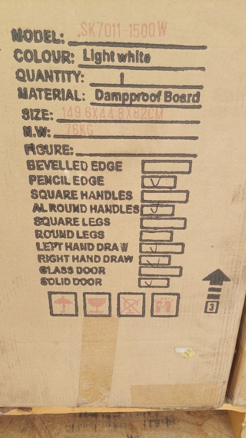 RRP$2598, K7011-1500W, DAMPPROOF BOARD, LIGHT WHITE, QTY: 2 PER PALLET.