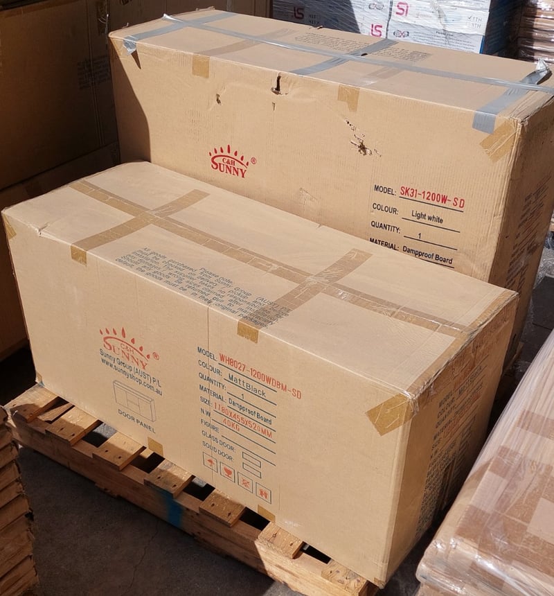 RRP$1998, WH8027-1200DBM-SD, DAMPPROOF BOARD, MATTBLACK, QTY: 1 PER PALLET. SK31-1200W-SD, DAMPPROOF BOARD, LIGHT WHITE, QTY: 1 PER PALLET. SOLD AS A LOT.
