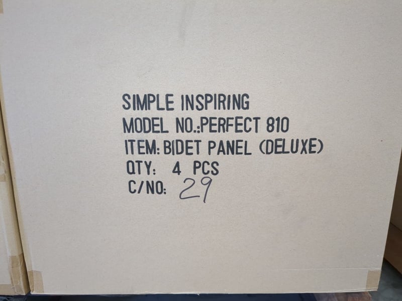 Perfect 810, bidet panel, QTY:4 PER BOX, 19 BOXES PER PALLET.