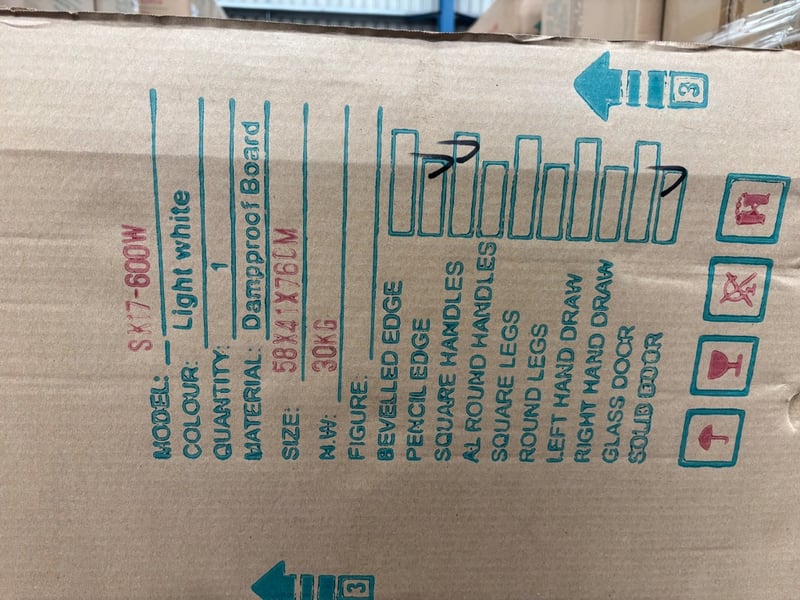 SK17-600W, White CabinetsQty:8 Box’s Dimensions: 58x41x76cm
