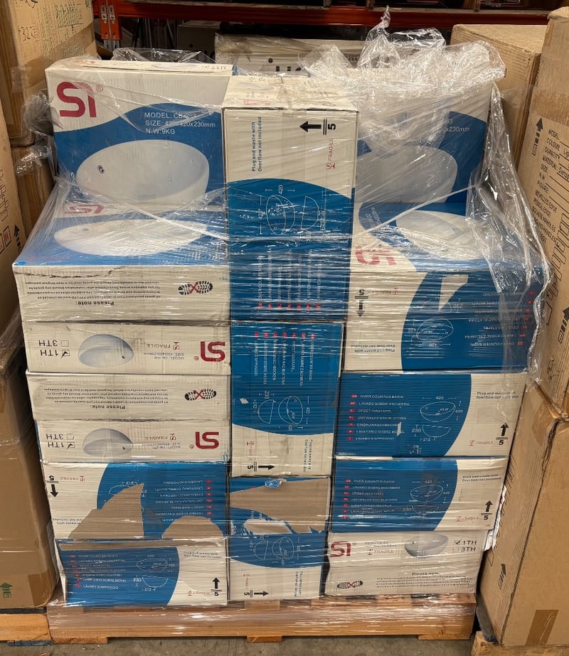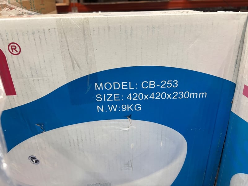 CB-253, White Over Counter Wash Basin Qty: 28 Boxes Dimensions: 42x42x23cmSold as pallet lot