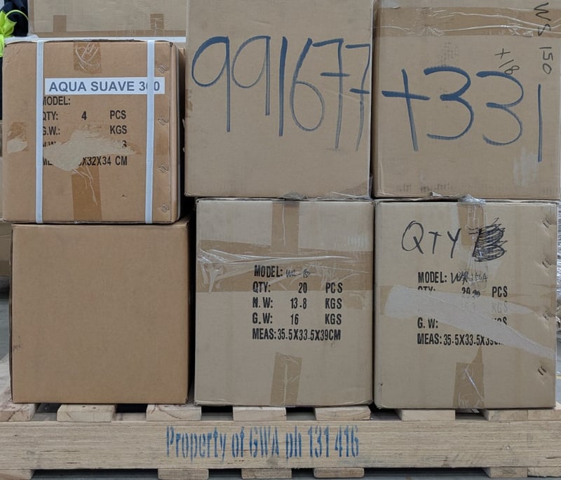 ASSORTED SHOWER HEADS. MR-150, MR-150A, MS-150, AQUA SUAVE 300. QTY 272. SOLD AS LOT