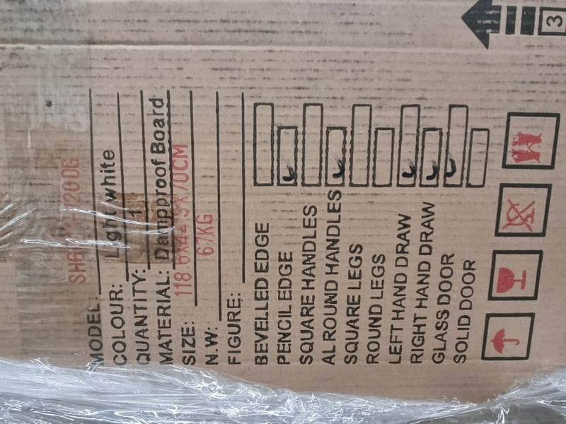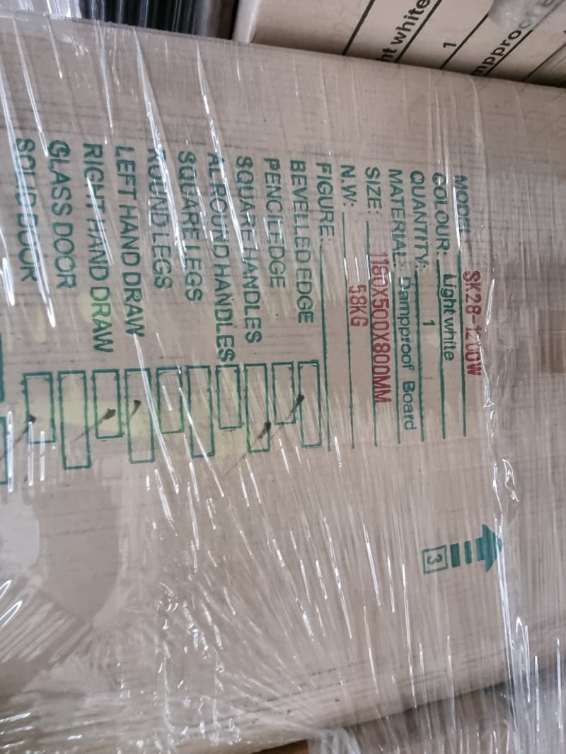 SH6011-1200G, White Dampproof Cabinets, Qty: 4, Dimensions: 45x119x70cmSK28-1200W, White Dampprof Cabinet, Qty: 1 Dimensions: 50x118x80cmSold as pallet Lot: 5 Boxs