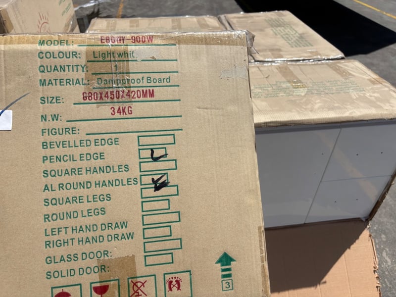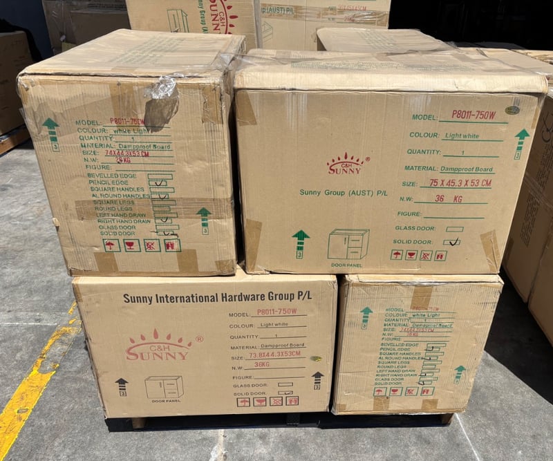 P8011-750W, White Dampproof Cabinets, Qty: 7, Dimensions: 44x64x53cmEbony-900W, White Dampproof Cabinet, Qty: 1, Dimensions: 45x88x42cmSold as pallet lot