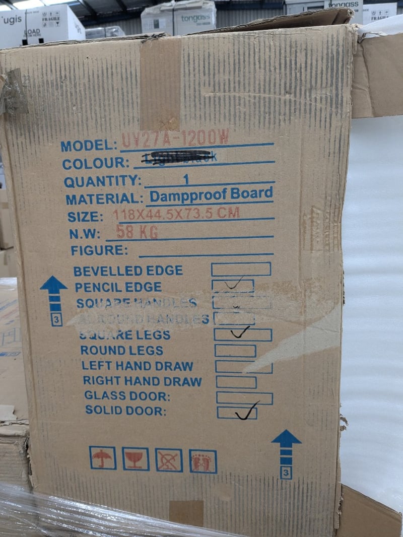 Bathroom vanity, sunny group, UV27A-1200W, brown wood colourDimensions approx; 118x44.5x73.5cmQuantity approx; 4 to pallet, sold as pallet lot