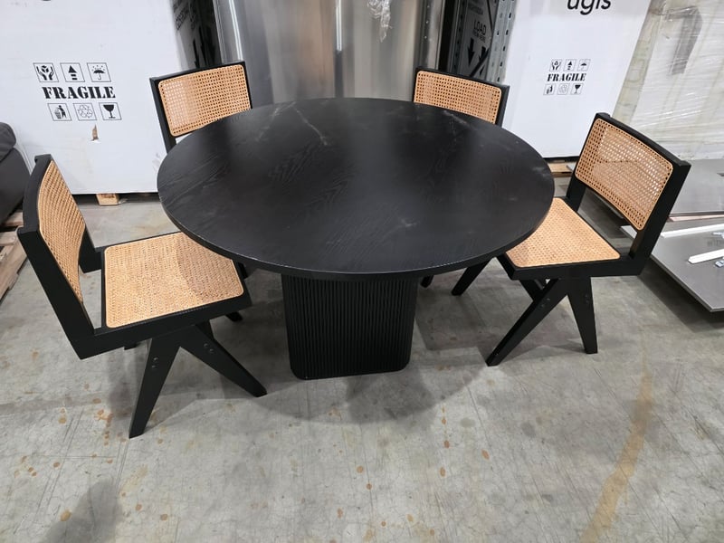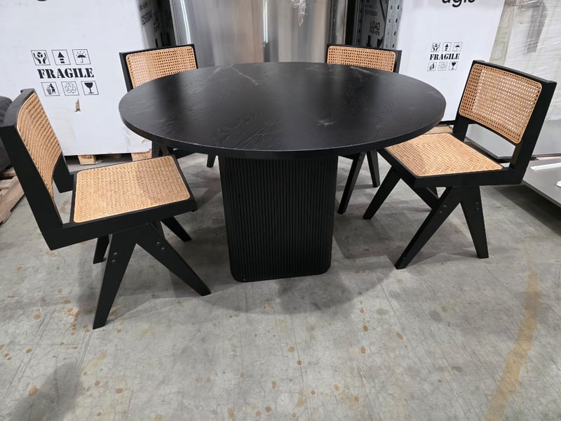 Black round timber table with 4 chairs