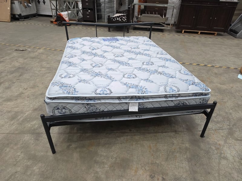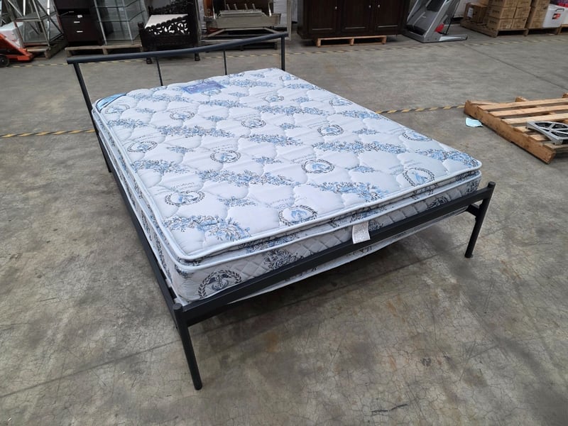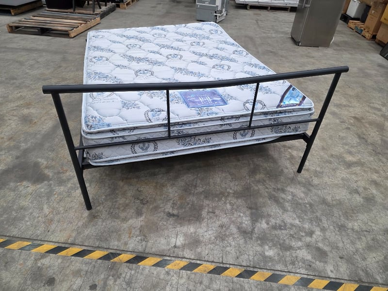 Black double metal bedframe with mattress