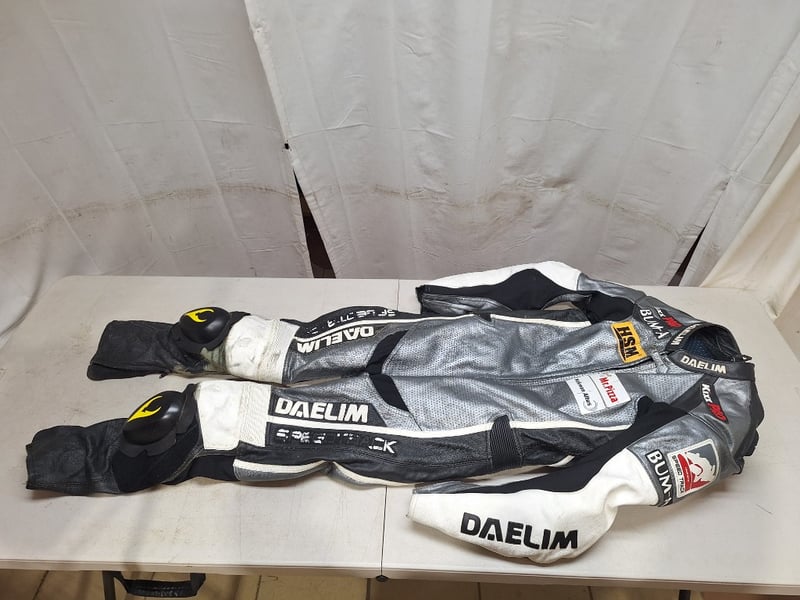 Nankai Leather Motorcycle Racing Pants Size Large & PAO Speed Plaza One-piece Leather Style Motorcycle Race Suit Size Medium SOLD AS LOT