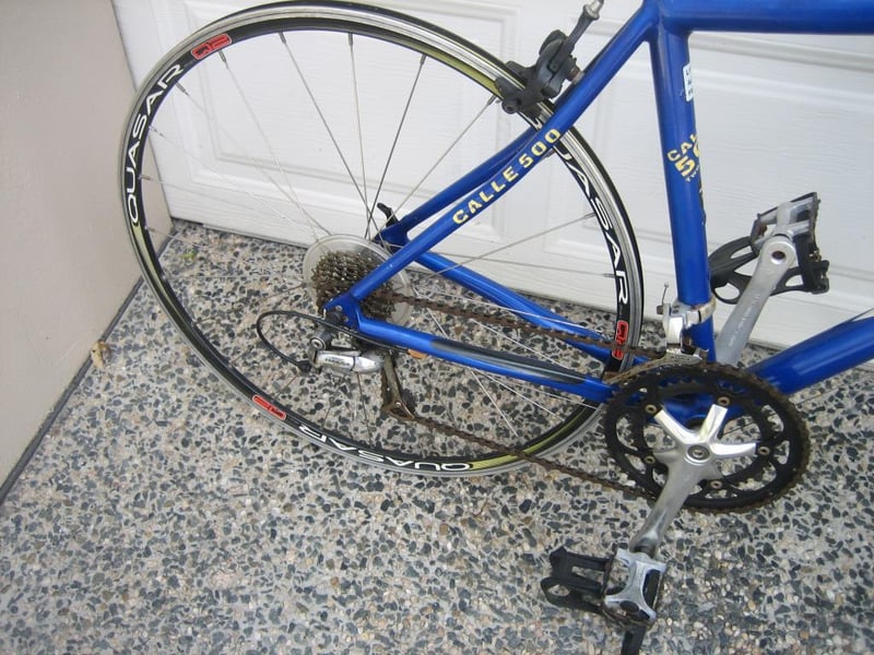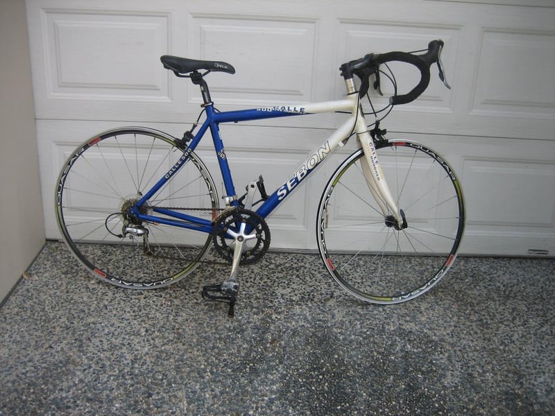 Racebike, Light alloy frame and rims, Size M, blue white in colour, needs tyres,