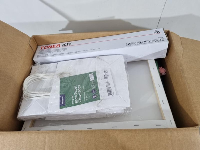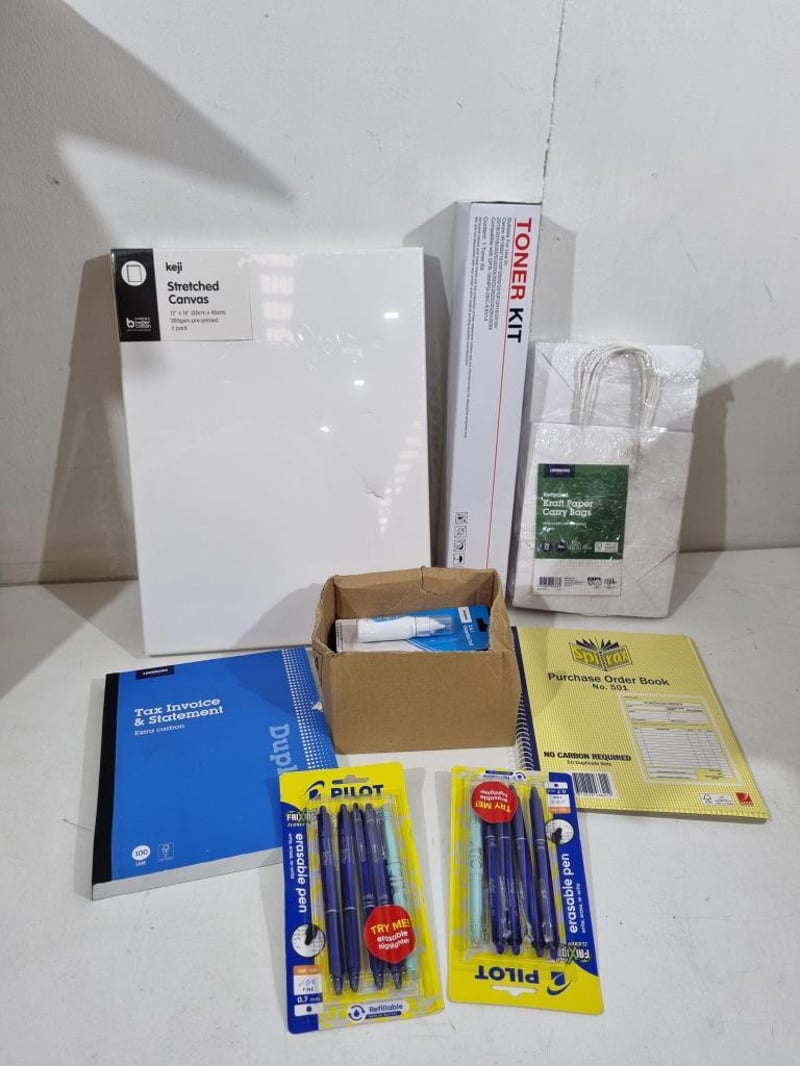 Office/Craft supplies, Assorted items including; books, pens, toner kit, canvas, etc.