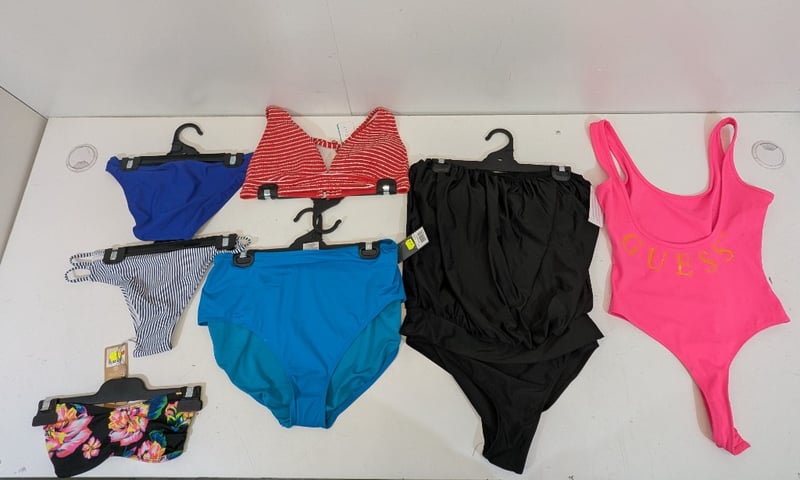 Box of Mixed Womens Guess, Calvin Klein, Regatta, Bonds and Adidas Swimwear, Bodysuits and Bottoms Sizes Fits: S,M,8,20,XXL