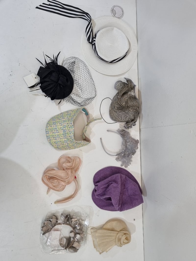 Box of Brand New Facinators, Hats and Headwear, Includes both Adult and Children Sizes