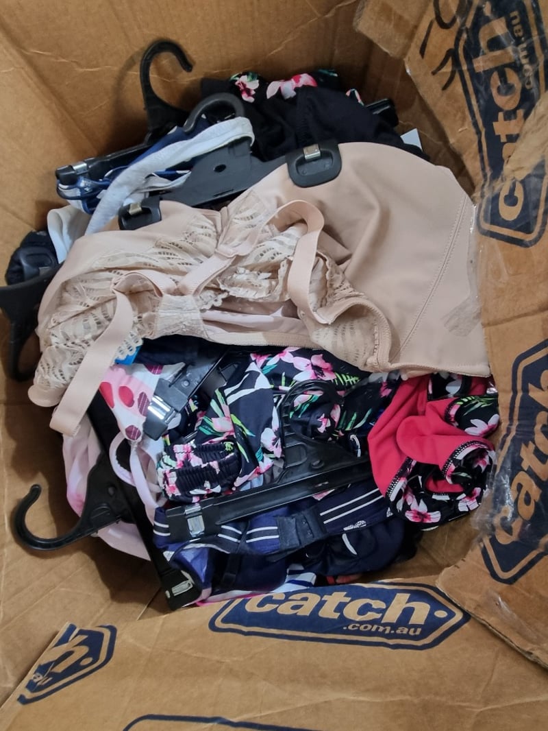 Box Lot of Mens and Womens Undergarments/Underwear and Swimwear, Mixed Assorted Brands with Multiple Sizes and Styles