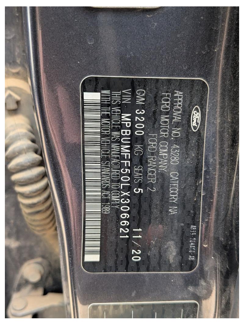 2020 Ford Ranger Wildtrak Dual Cab Utility Year: 2020 Make: Ford Model: Ranger Wildtrak Type: Dual Cab Utility Odometer/Hour Meter: 217,954kms Configuration: 4x4 VIN: MPBUMFF50LX306621 Located: Boneyard