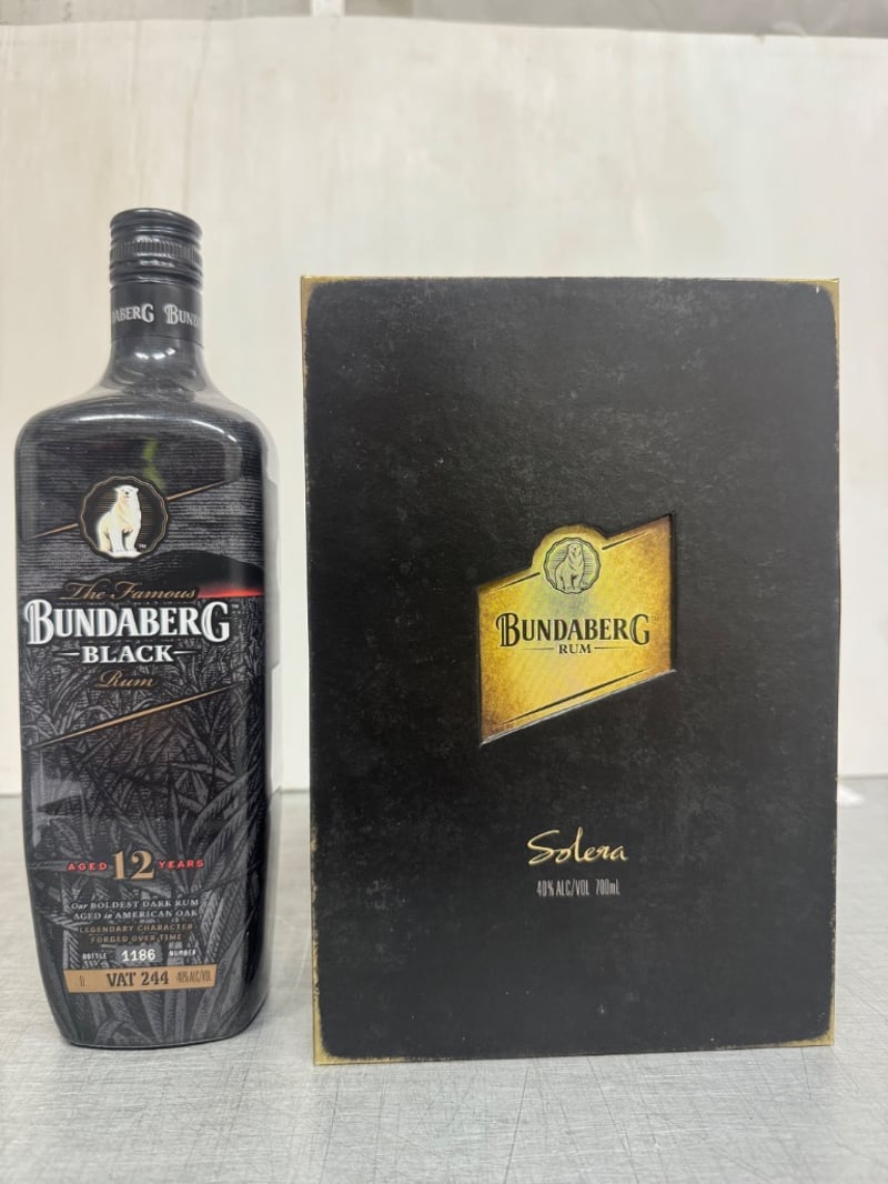 Bundaberg Rum black bottle # 1186Bundaberg Rum Solera bottle # 1186BLACK 1 litre ABV 40%SOLERA 700ml ABV 40%SOLD AS LOT