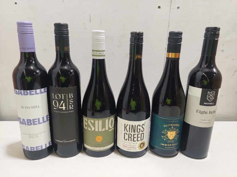 Assorted red wines.