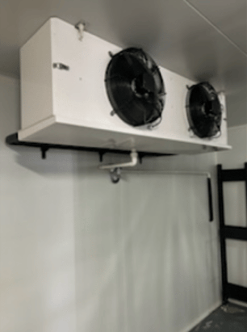 Standalone Cold Room. Notes/Extras: Complete Cold Room with Indoor Unit, Refrigeration Panels, Opening Door & Shelves. Dimensions: 25m squared & 49m cubed Note: Room has been dismantled
