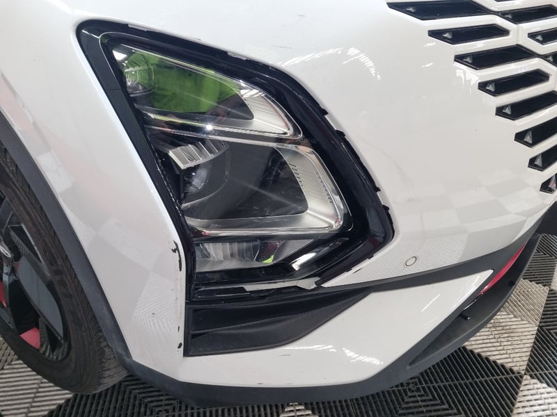 Damage to front bumper, fitment and paint, DRL and fog light hit, Marks and scratches,