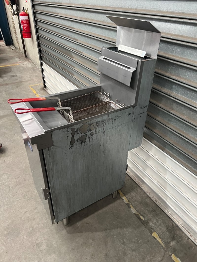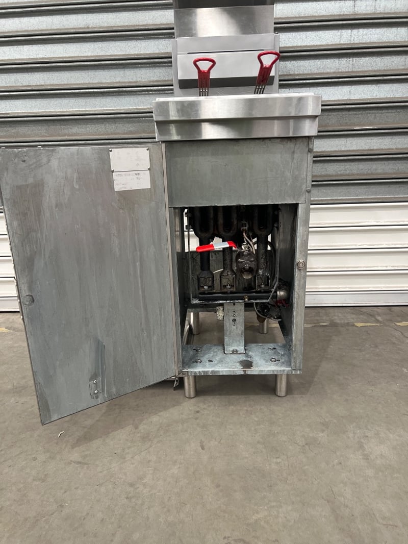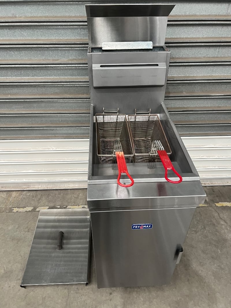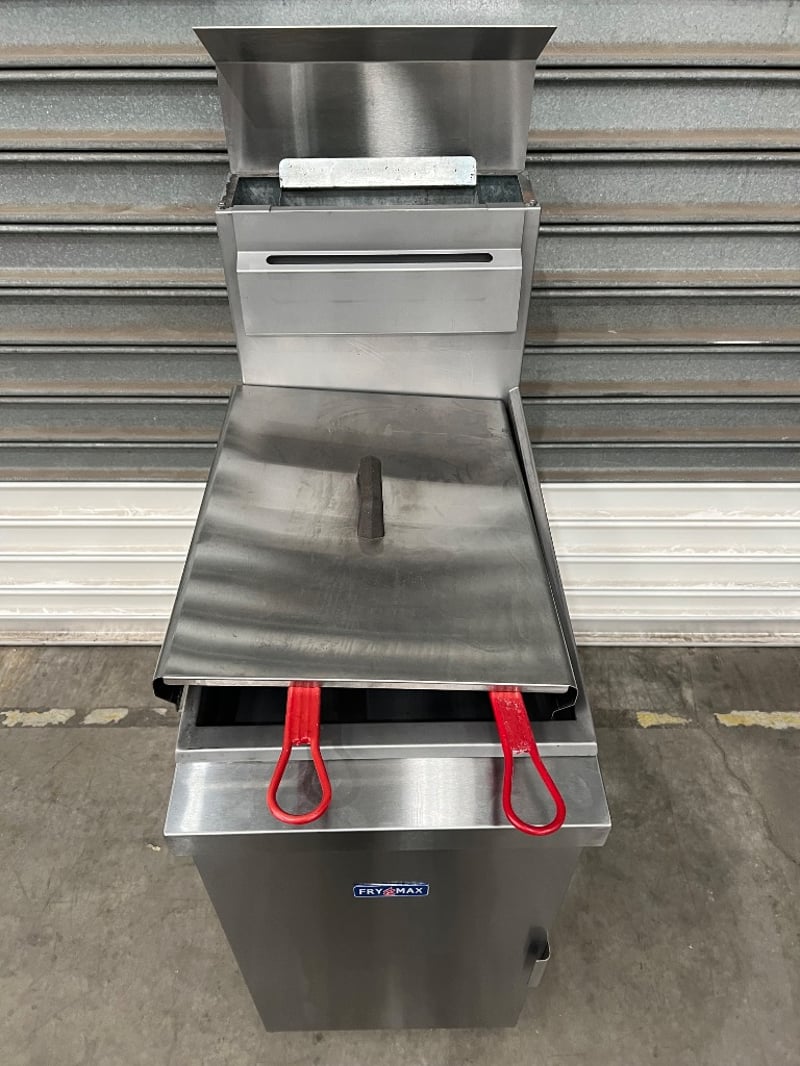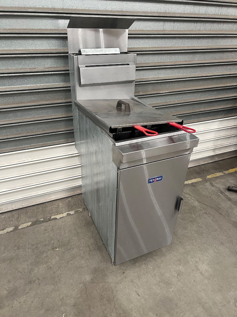 Fryer, Frymax, RC-300E, serial; .2105015142, stainless steel, 1 burner, single pan Dimensions approx; 39.5W x 77D x 52H cm Quantity; 1