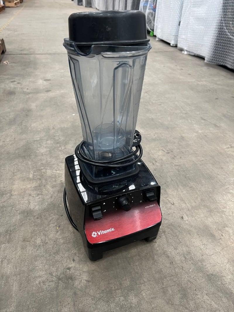 Blender, Vitamix, VM0105E, serial; 010089210608382789, black, on counter Dimensions approx; 21W x 23D x 52H cm Quantity; 1