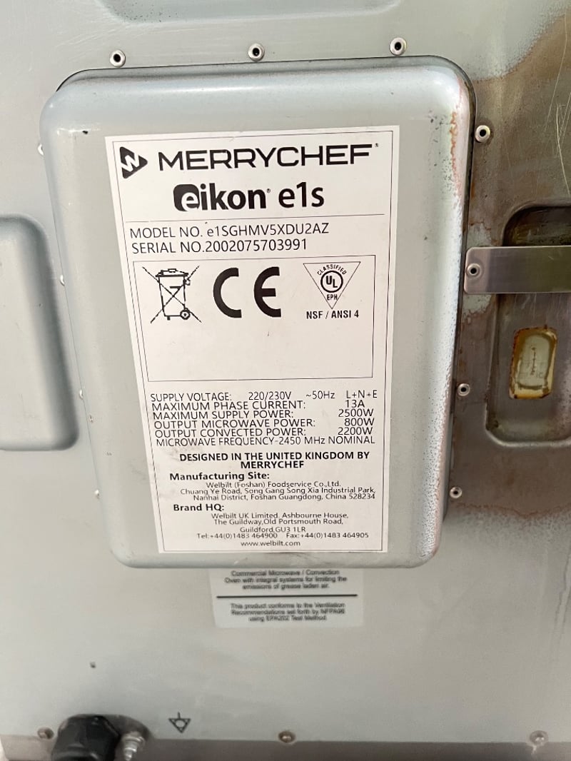 Oven, Merrychef, e1SGHMV5XDU2AZ, serial; 2002075703991, black
