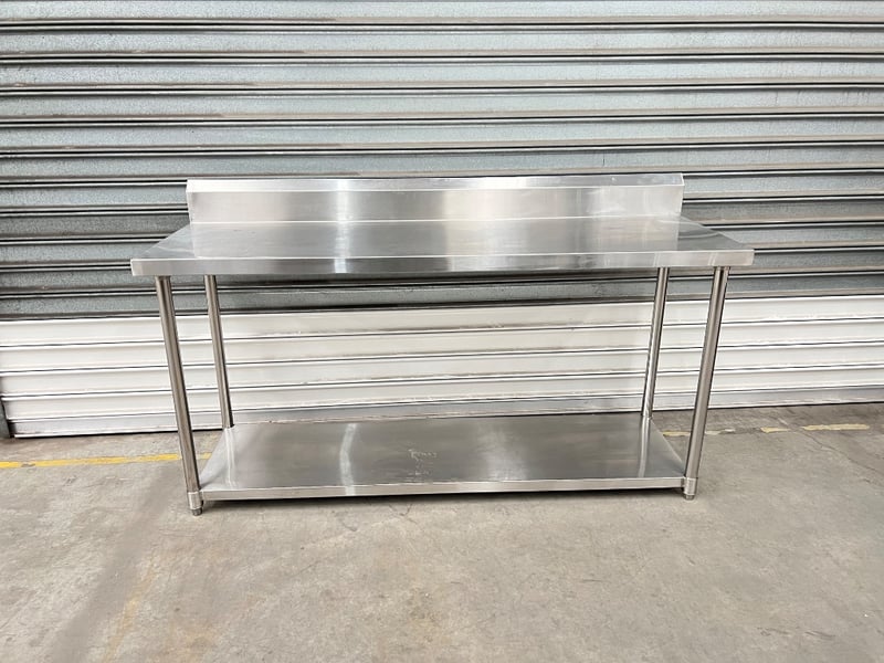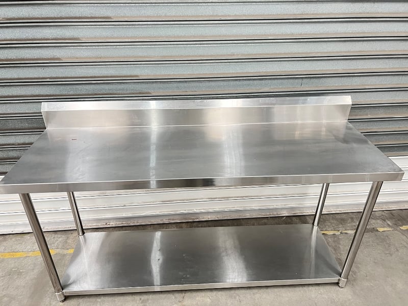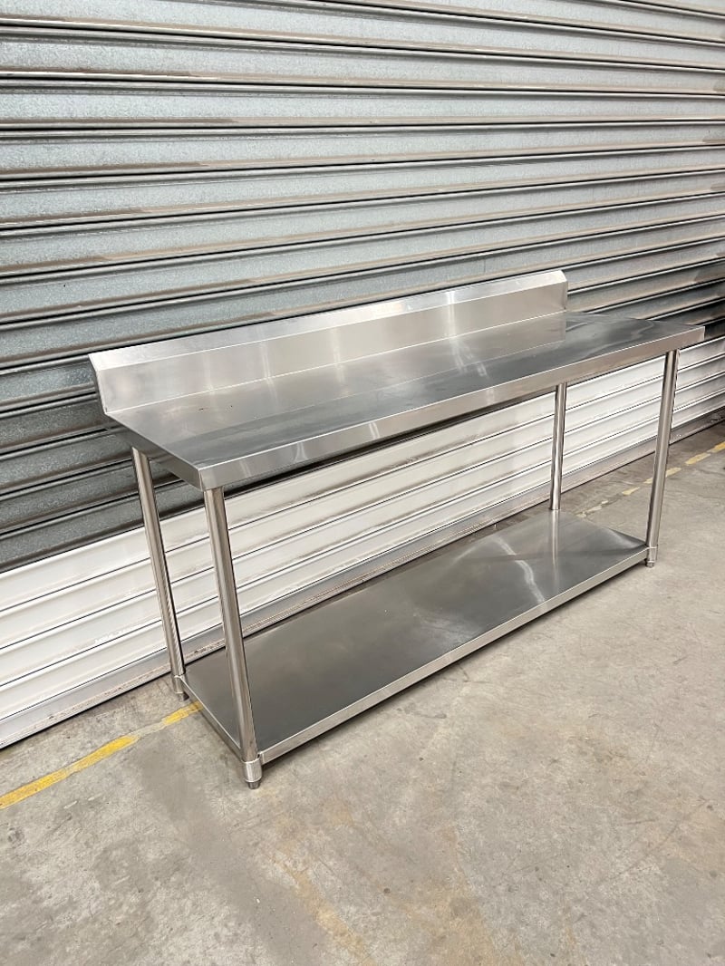 Bench, unknown brand/ model, W/splashback, stainless steel Dimensions approx; 180W x 60D x 105H cm Quantity; 1