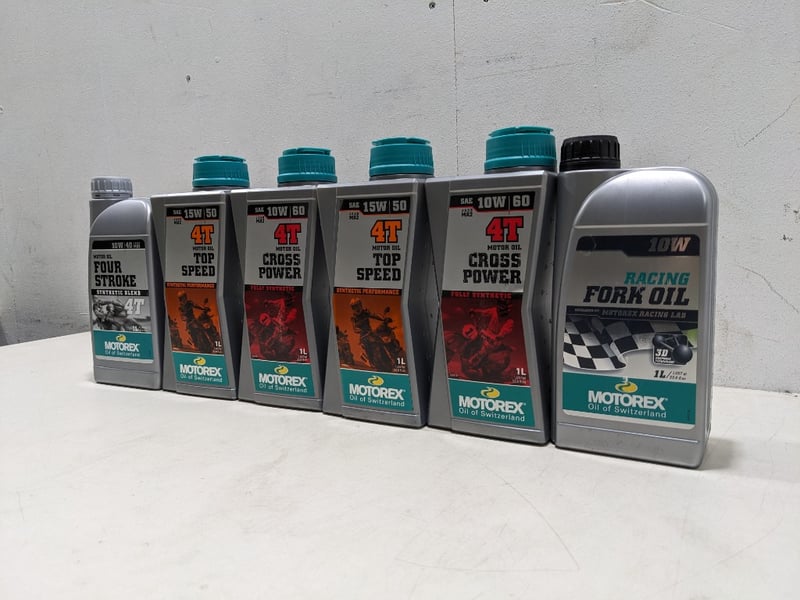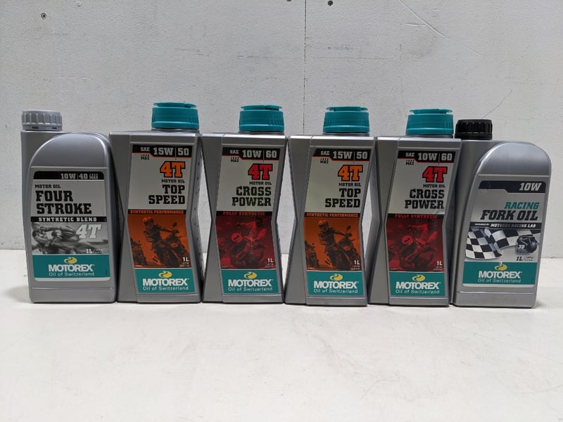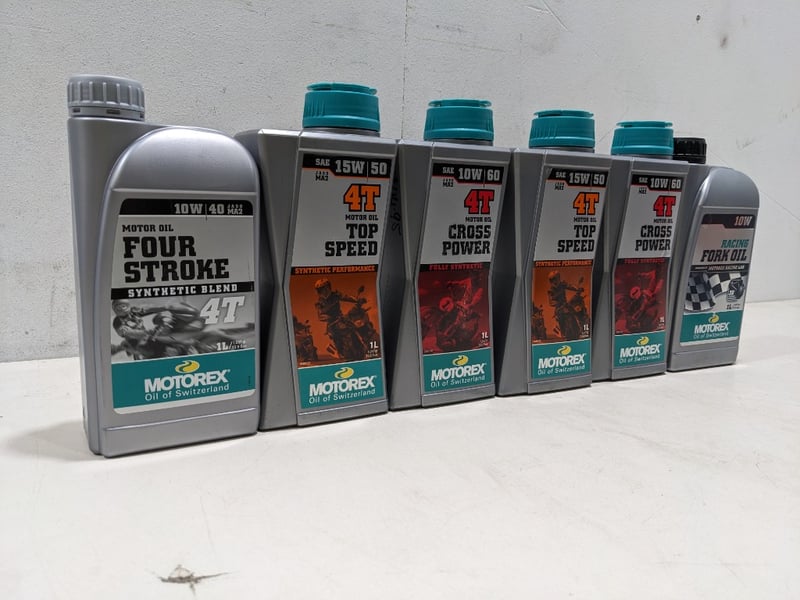 Motorcycle: Assorted items, includes Motorex 4T motor oil TOP speed 15W-50, 4T motor oil CROSS power 10W-60 and more... Sold as a lot. Note: Due to the nature of this product, shipping is unavailable. This item is available for collection only.