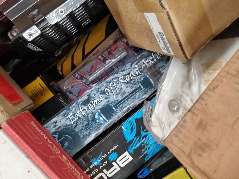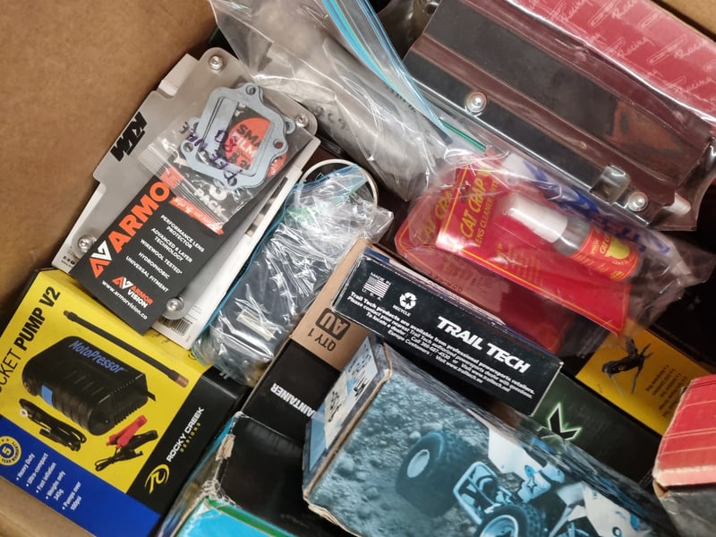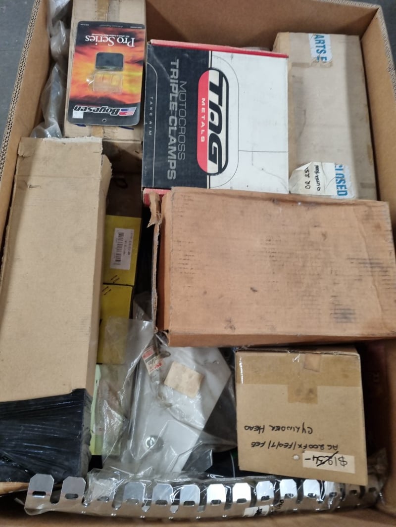 Assorted Motorcycle parts and accessories. Various brands include trail tech, armourvision and more..... parts and accessories include radiator guards, pocket pump V2 and more...... Sold as pallet