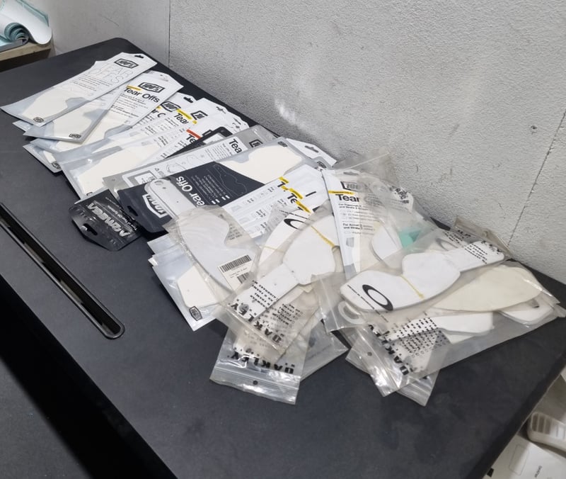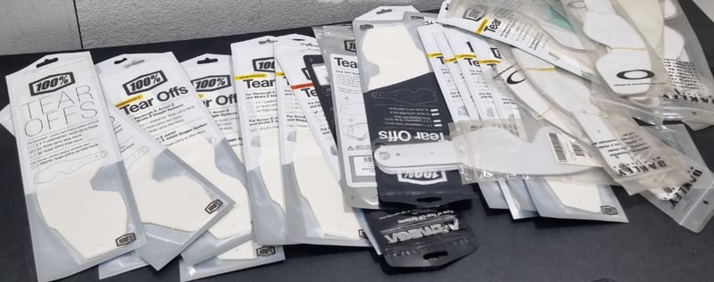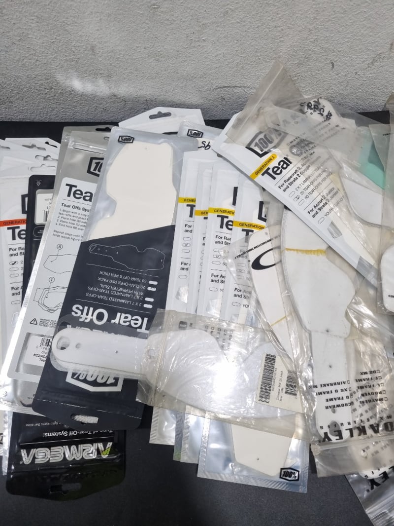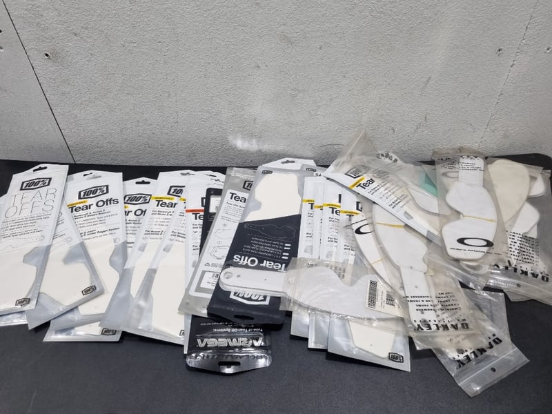 Motorcycle accessories lot, Tear Offs for goggles,assorted styles and styles .....Sold as lot