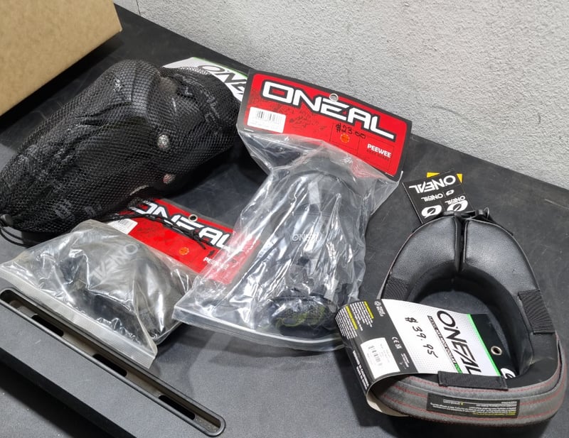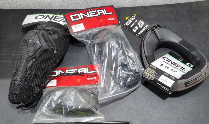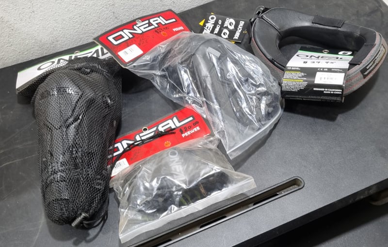 Motorcycle assorted accessories lot, includes shin guards, neck collar,assorted sizes.Sold as lot