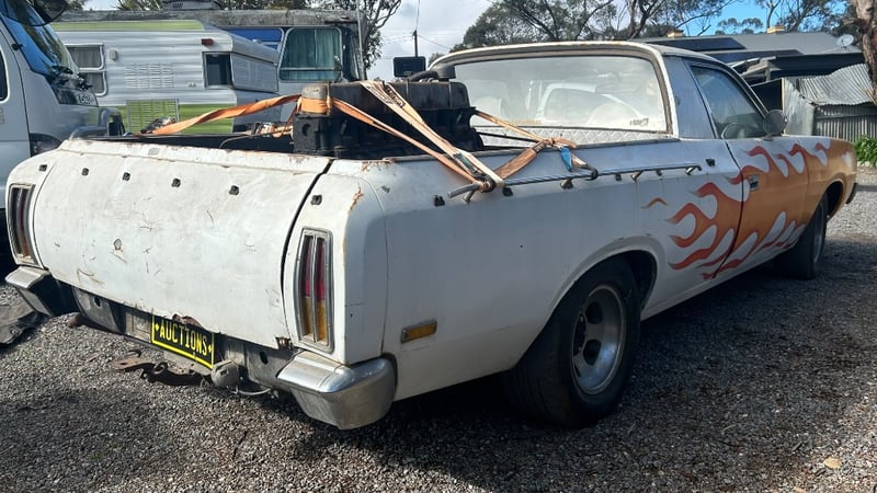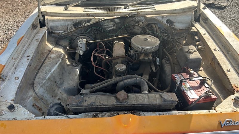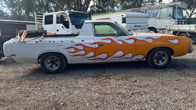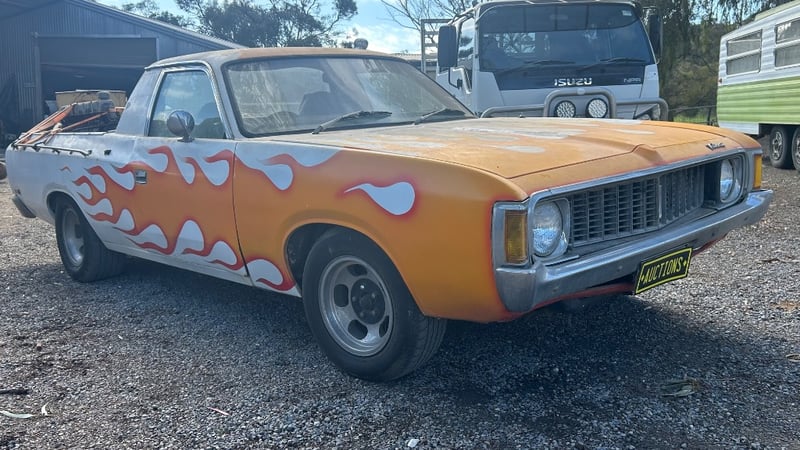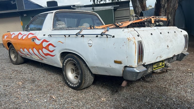 1974 Chrysler Valiant VJ Ute Year: 1974 Make: Chrysler Valiant Model: VJ Series: N/A Badge: N/A Body: Single Cab Utility Drive Type: Rear Wheel Drive Odometer: Indicating 412,805 Kilometres Engine: 4.3L, Inline, 6 Cylinder, Petrol Engine Transmission: 3-Speed Automatic Colour: White Seats: 3 Description/extras: Air Conditioning, CD Player, Various Spare Parts Refer To Images, Vehicle Starts & Runs. VIN: WBBER64558 (Not Sighted) ENG No: D221B00094 Damage: Paint & Panel Imperfections Refer To Images, Rust Present, Interior Trim Missing Or Damaged Refer To Images, Drivers Door Slightly Dropped. KeyNo: N/A For more information contact: Ryan Sawade 0401 644 313 [email protected]