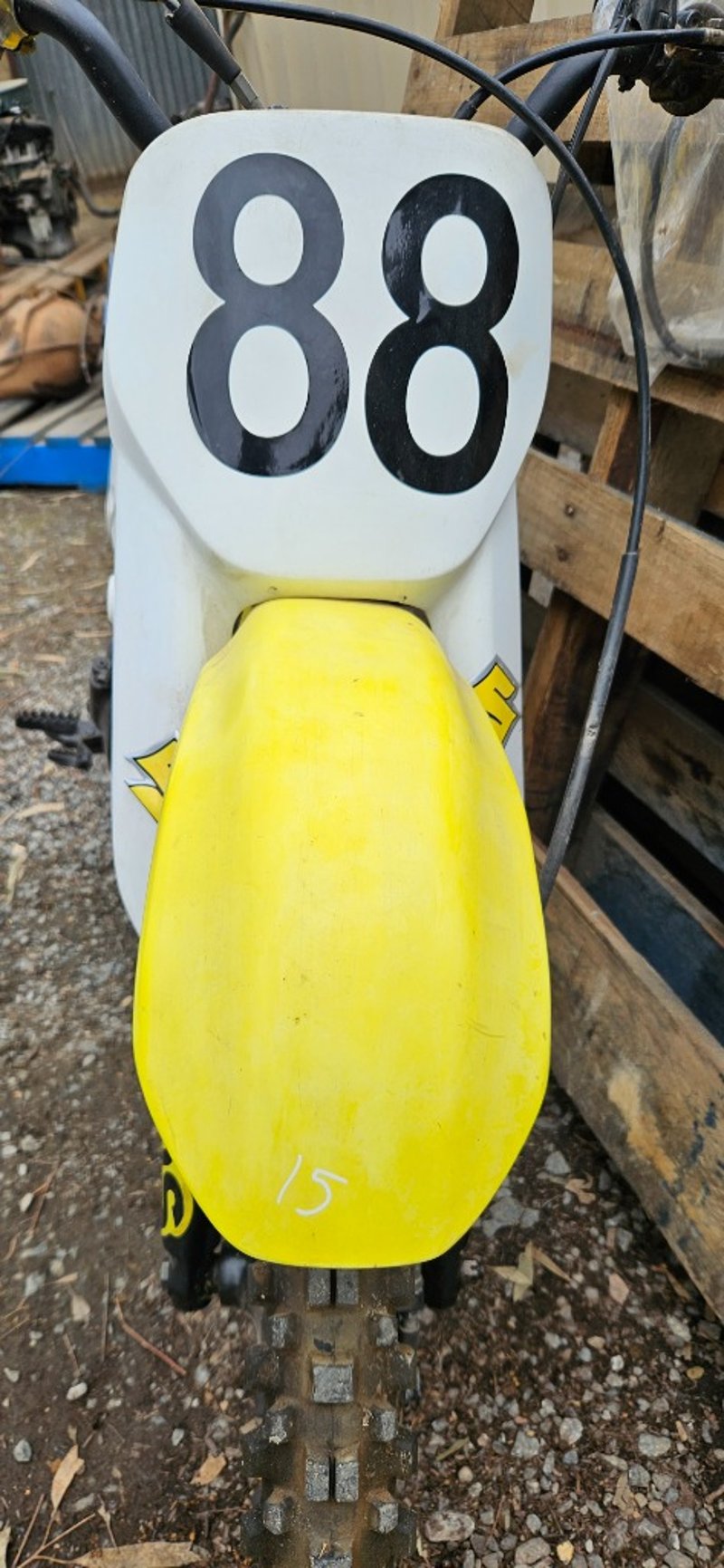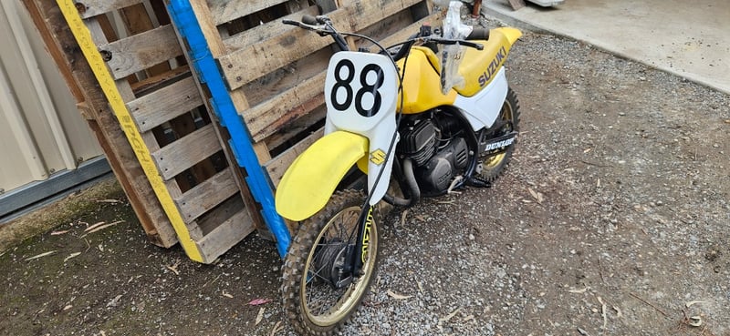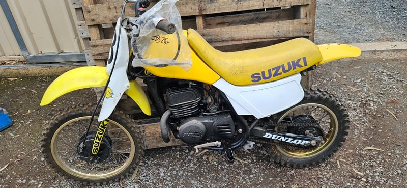 Suzuki DS80, Dirt Bike Year: Unknown Make: Suzuki Model: Unknown Body: Off-Road Drive Type: Chain Odometer: Unknown Engine: 79cc, Air-cooled, 2-stroke Transmission: Unknown Colour: Yellow Seats: 1 VIN: JS1DC13A000501905 ENG No: Unsighted Note: Not Running, Clutch Cable needs replacing For more information contact: Ryan Sawade 0401 644 313 [email protected]