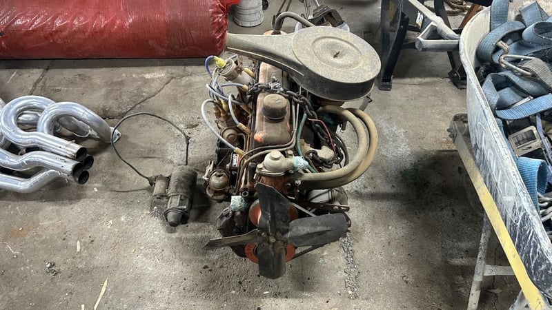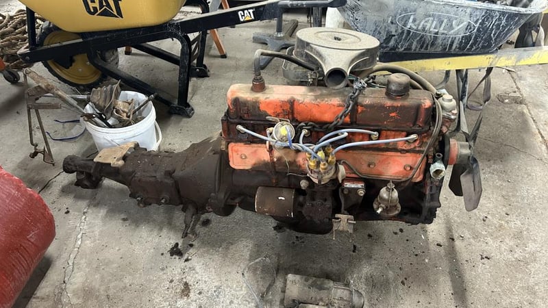 Engine, Holden 186 Engine and Manual 3spd Transmission. Comes with shifter assembly, Condition Unknown.