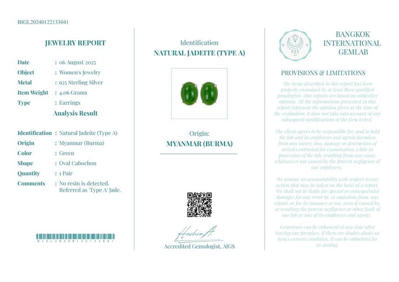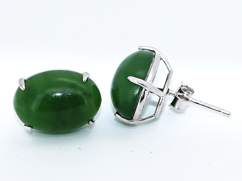 NATURAL BURMESE JADE EARRINGS ON 925 SILVER - WITH CERTIFICATE