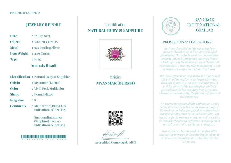 Comments : Main Stone (Ruby) Has Indications Of Heating.