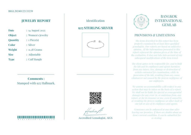 925 STERLING SILVER CUFF BANGLE - WITH CERTIFICATE