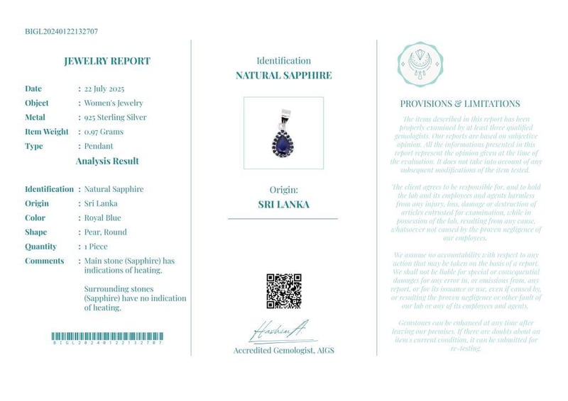 NATURAL SRI LANKAN SAPPHIRE PENDANT ON 925 SILVER - WITH CERTIFICATE