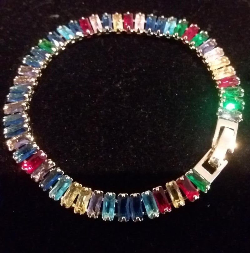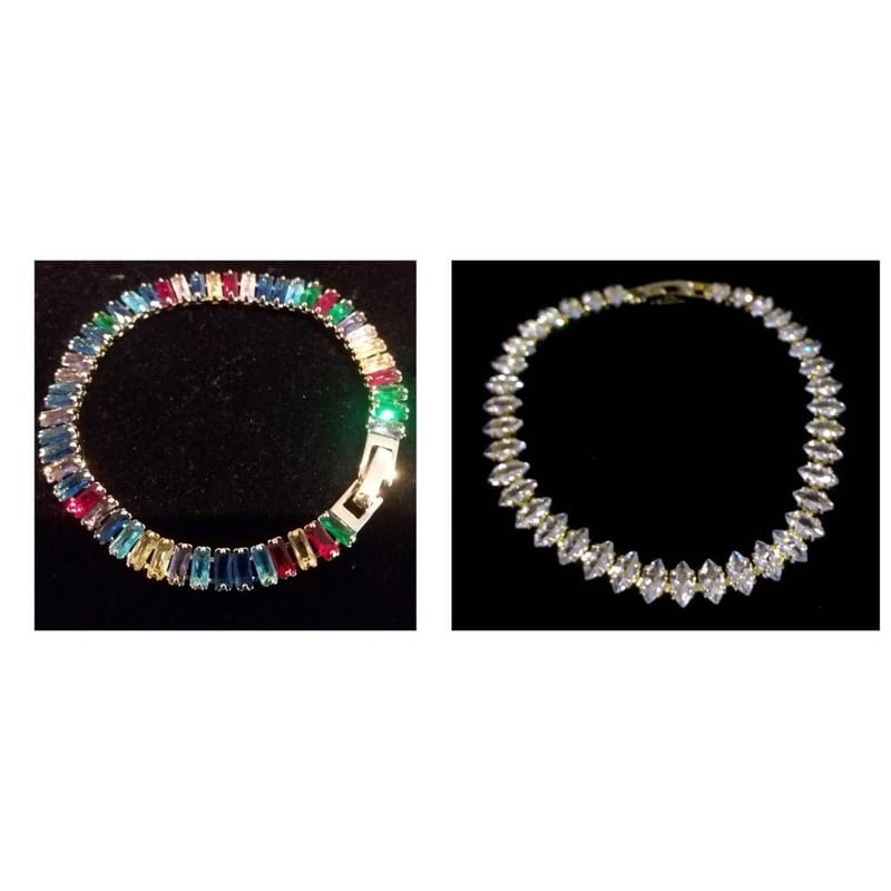 2 X GOLD PLARED TENNIS BRACELETS WITH MULTICOLOUR CUBIC ZIRCONS 0+18