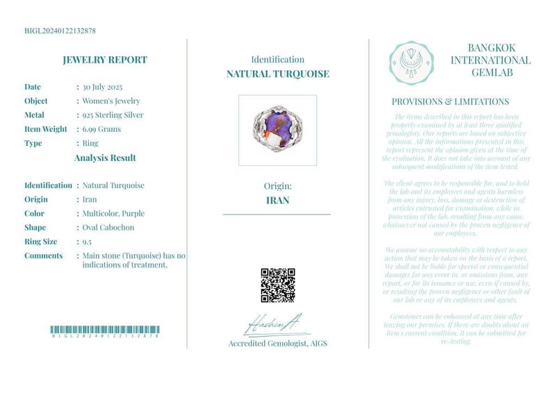 Comments : Main Stone (Turquoise) Has No Indications Of Treatment.