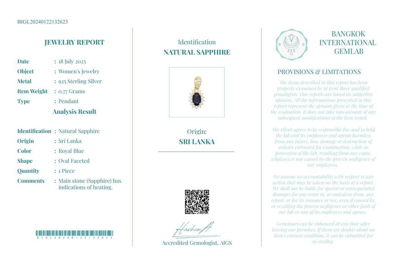 NATURAL SRI LANKAN SAPPHIRE PENDANT ON 925 SILVER - WITH CERTIFICATE