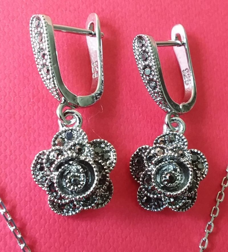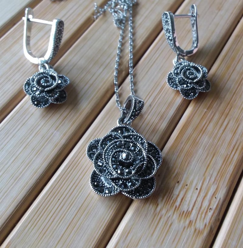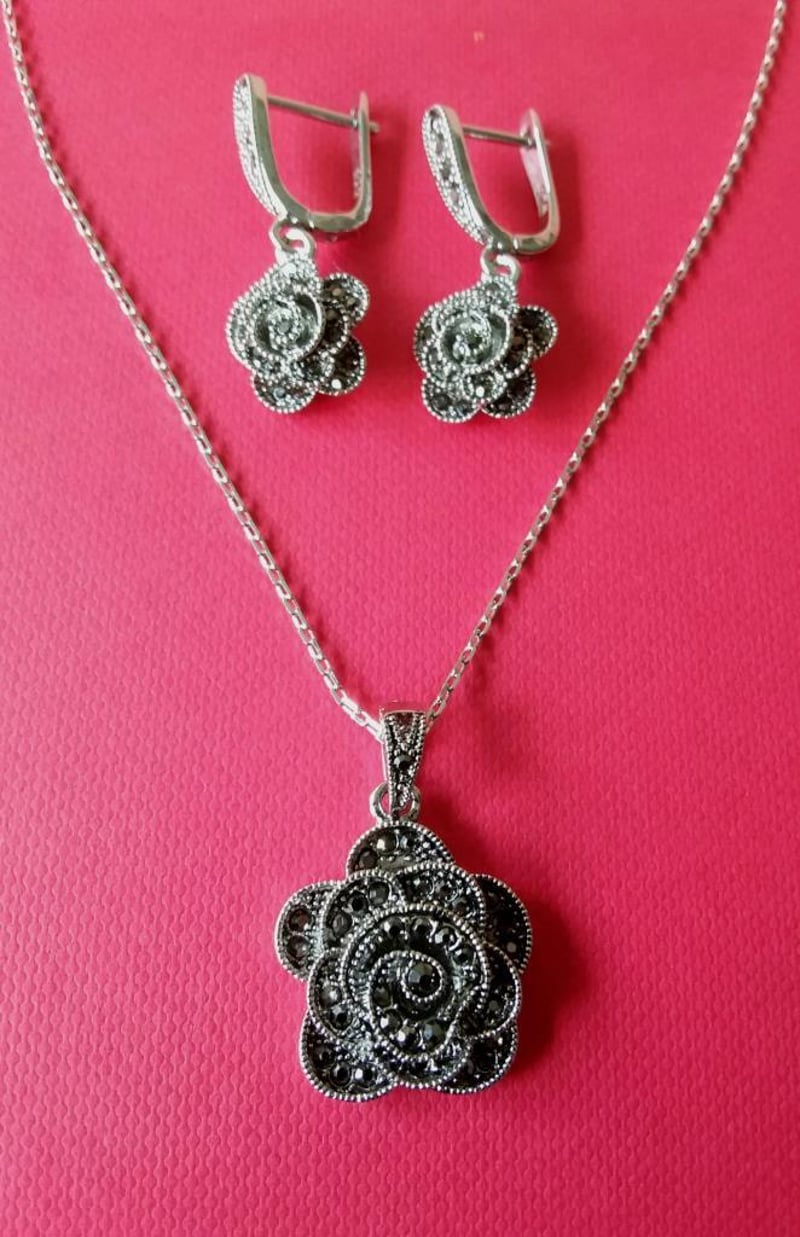 925 SILVER BLACK MICROPAVE ZIRCONS NECKLACE EARRINGS SET
