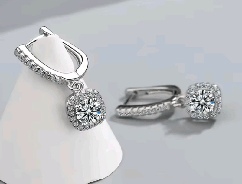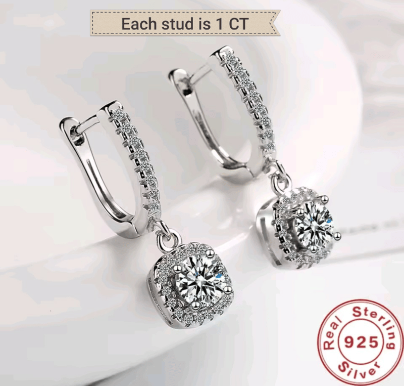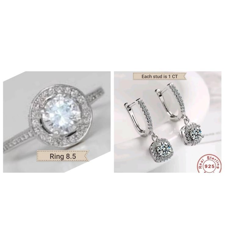 925 SILVER CUBIC ZIRCON RING SIZE 8.5 AND HUGGIE DROP EARRINGS