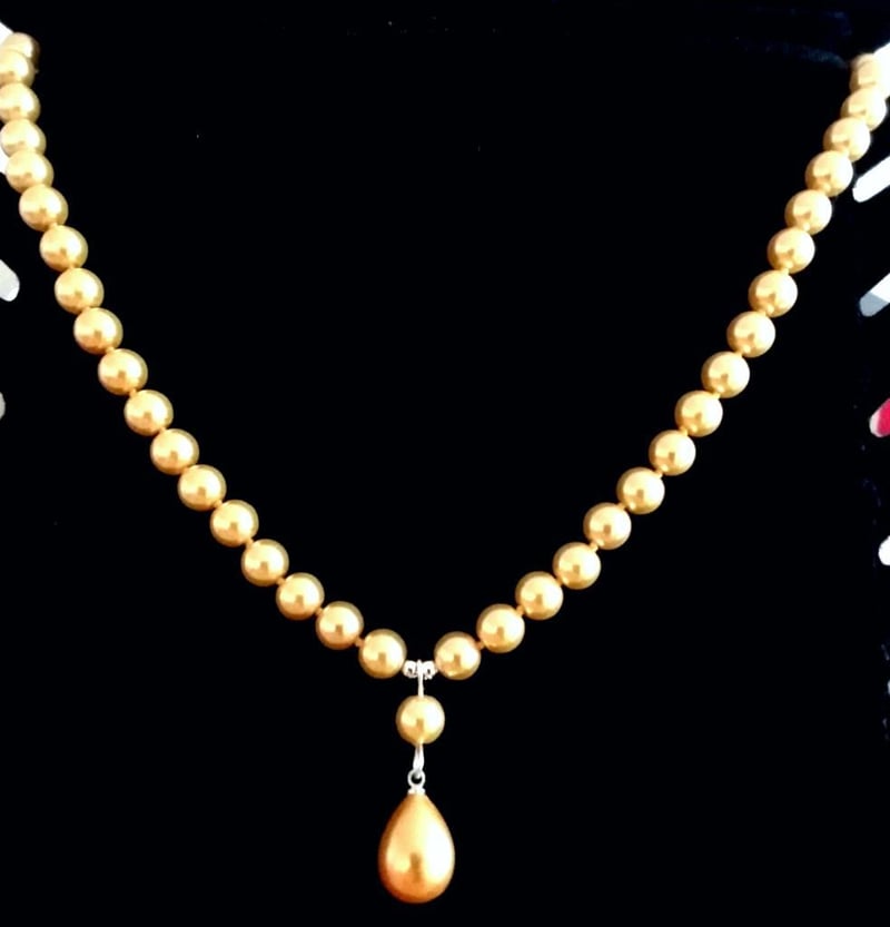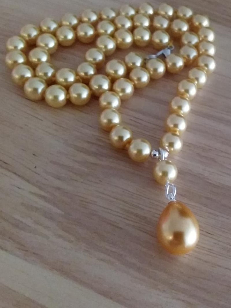 GOLD SOUTH SEA SHELL PEARL NECKLACE 48 CMS LONG