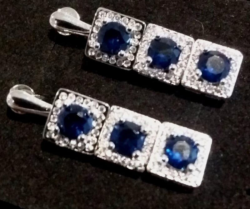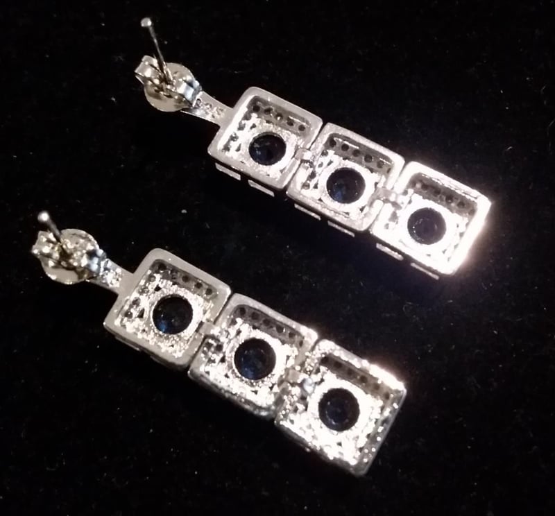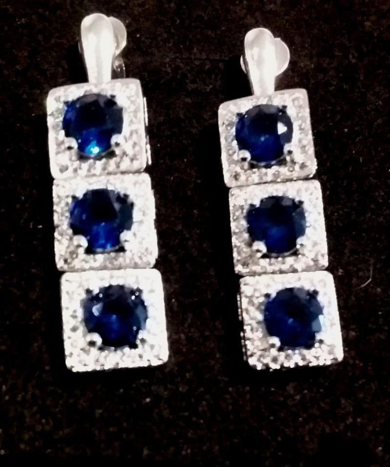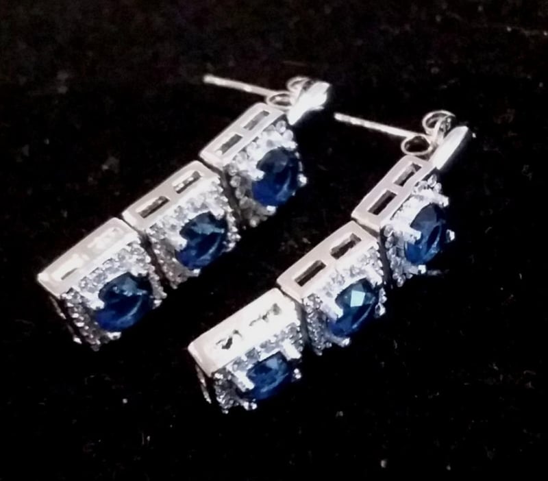 925 SILVER LONG DROP EARRINGS SAPPHIRE CRYSTALS