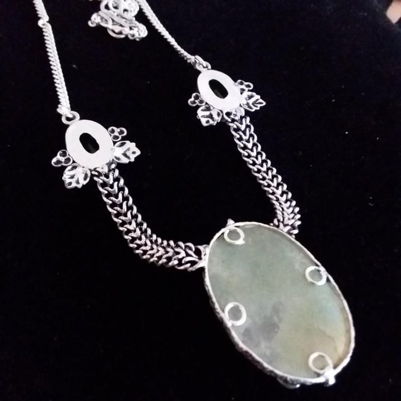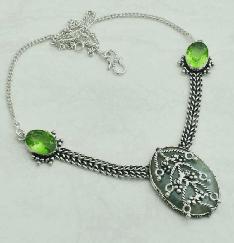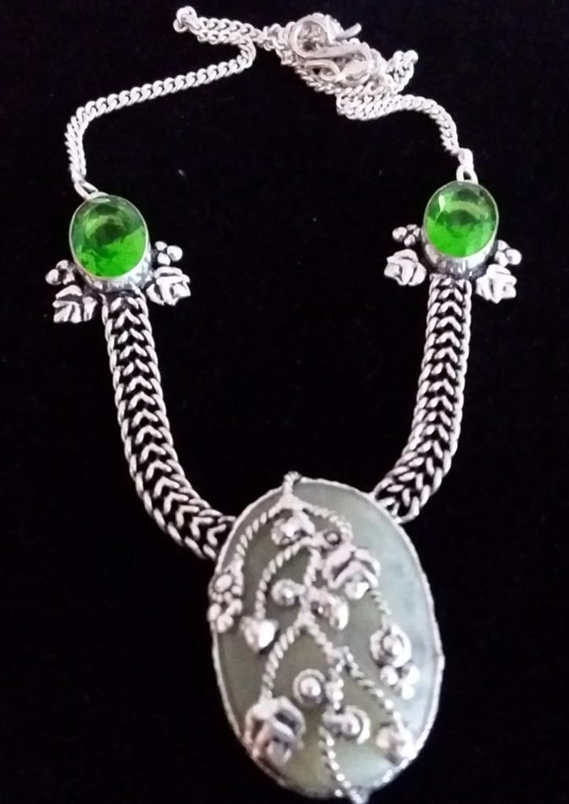 925 SILVER PLATED ETHNIC GEMSTONE NECKLACE