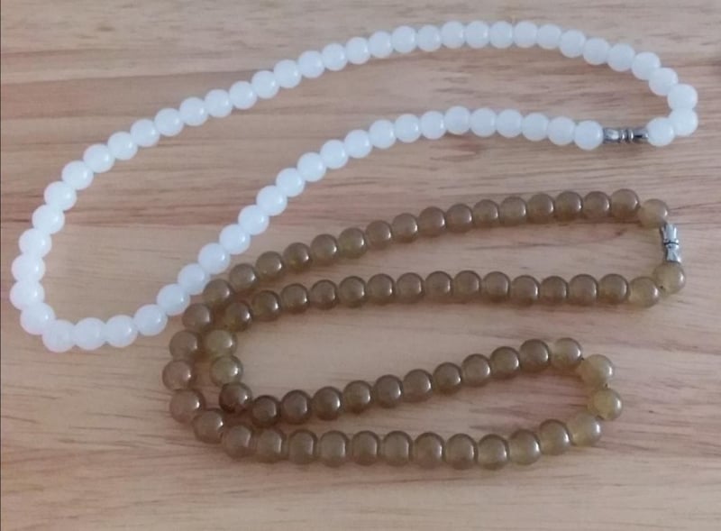 2 X JADE NECKLACES WHITE AND BEIGE